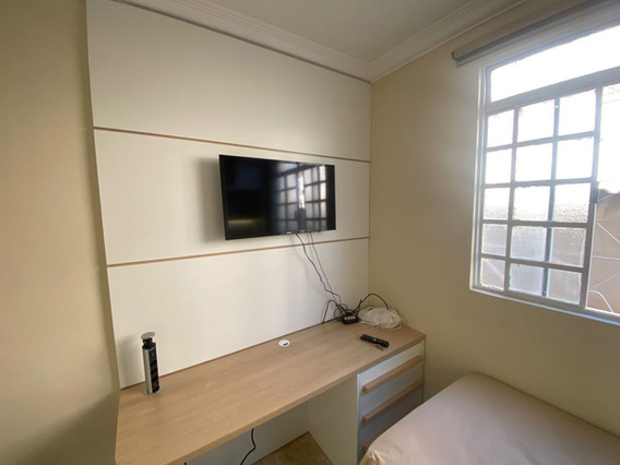 Painel em L cabeceira e para TV, nichos e armários aereos e bancada bairro Serra Belo Horizonte